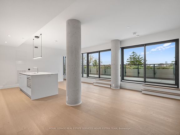 Experience refined urban living in this meticulously designed two-bedroom plus den, two-bathroom suite at 1414 Bayview Avenue. Perched on the sixth floor of a boutique building, suite 606 is a perfect blend of modern sophistication and timeless design. Spanning 1,225 square feet of interior space, the suite is thoughtfully laid out for maximum comfort and privacy with a split-bedroom floor plan and an additional private den. The open-concept living and dining areas are flooded with natural light through wall-to-wall west-facing windows, complemented by high ceilings and hardwood flooring throughout. The heart of the home is a custom Italian kitchen with Caesarstone countertops, a large centre island, high-end integrated Miele appliances designed for both function and style. Step out onto the expansive 600 sq.ft. terrace, perfectly elevated above the treetops for panoramic sunset views and seamless indoor-outdoor living. Both bedrooms offer tranquil west-facing views. The primary suite features a large custom walk-in closet and a spa-like ensuite with a floating double vanity, Caesarstone counters, a mosaic-tiled wall and walk-in rainfall shower, and a private water closet. The second bedroom boasts ample closet space. A versatile den makes for a perfect home office or nursery, a sleek 3-piece bathroom with floating vanity and walk in shower is conveniently located off the entryway, along with a laundry room complete with sink. The suite comes complete with two parking spaces and a large locker. 1414 Bayview Avenue is a boutique residence of just 44 luxury suites, known for its elevated design, smart layouts, and high-end finishes. Nestled in one of Toronto's most sought-after communities, residents enjoy easy access to top-tier amenities, including restaurants, shops, parks, and trails, offering a balanced lifestyle of urban convenience and neighbourhood charm.