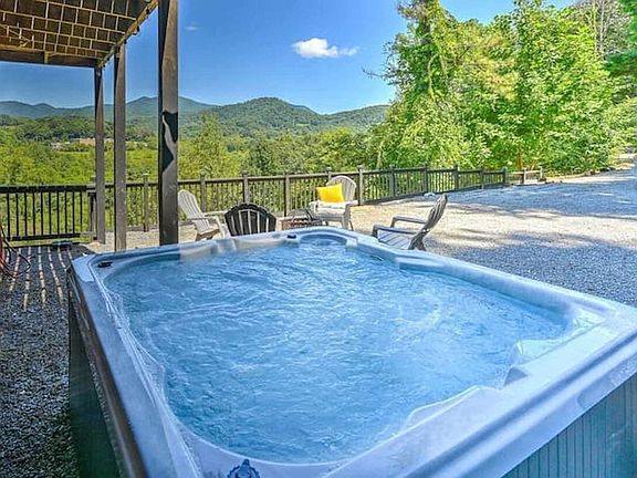 This 4-bedroom home in Canton, NC, offers everything you need for an amazing vacation. With 180-degree stunning mountain views, three private decks, and ample parking, this property is a true retreat. Located just 25 minutes from the Biltmore Estate and 22 minutes from eclectic West Asheville, you'll feel at home in this prime location. Welcome to your mountain retreat! This spacious and inviting cabin is the perfect escape for families and groups, offering four bedrooms and three bathrooms, comfortably sleeping up to 11 guests. Enjoy year-round mountain views, unwind in the brand new hot tub, or cozy up by the fireplace after a day of adventure. For indoor fun, challenge your crew in the ping-pong room or gather for games in the dedicated poker room. The chef's kitchen is fully stocked with high-end stainless appliances, ample cabinetry, and a large island with high seating, making it ideal for preparing meals and entertaining. Up to two dogs are allowed for $125 per stay, but no cats please. Parking is available in the driveway for up to six cars. If you're interested in a long-term stay, please reach out to inquire about availability. Nearby attractions include the Blue Ridge Parkway with scenic drives, overlooks, and hiking trails, Graveyard Fields and Skinny Dip Falls for waterfalls and natural swimming holes, and Berm Park for mountain biking. Lake Logan offers a peaceful setting for fishing, kayaking, or relaxing, while Canton Recreation Park provides a pool, walking trails, playground, and picnic areas. Explore the iconic Cold Mountain Trail for panoramic views or visit Cataloochee Valley for elk watching and historic buildings in the Great Smoky Mountains National Park. Dining options include Southern Porch, Rocky Face Tavern, JRO's Burgers & Subs, Jukebox Junction Soda Shoppe, and The Valley Pizzeria. Accessing this rental may be challenging during snow or ice conditions, so exercise caution and plan accordingly. A 4-wheel drive vehicle is required to access the property, especially during rainy or snowy conditions. No parties are allowed, and violations may result in immediate termination of the stay. Check-in is at 4pm and check-out is at 10am. An exterior camera is installed solely to monitor the cleaning team for quality and security purposes. Guests must be 21 years or older to book this property. Outdoor pools in North Carolina typically close for the season in October, so please inquire ahead of your stay if pool access is essential. A remote work-friendly environment is available, though a laptop computer is not included.