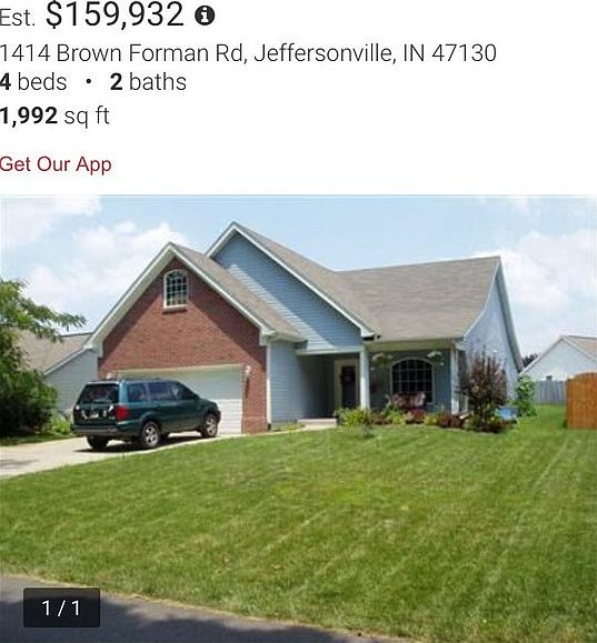 This 1992 square foot single family home has 4 bedrooms and 2.0 bathrooms. This home is located at 1414 Brown Forman Rd, Jeffersonville, IN 47130.