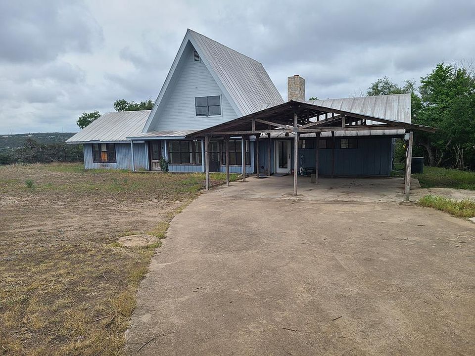 Nestled in the heart of the Texas Hill Country, this A-Frame home offers stunning, long-distance eastern views that will leave you breathless. With two large tracts of land, totaling 3.68 acres, this property offers a private oasis with ample space to relax and enjoy the serene surroundings. The large kitchen features hard counters, high-quality cabinets, and a convenient work station, making it the perfect space for entertaining guests or cooking for loved ones. Two living areas provide ample space for relaxation, and a large wood-burning fireplace adds a cozy touch to the space. Step outside onto the expansive deck, where you can enjoy the picturesque views or take a dip in the great pool and hot tub, which were installed in 2018. While the home does require a lot of deferred maintenance, it presents an excellent opportunity for the right buyer, investor, or flipper to make it their own. Don't miss out on the chance to own this unique Hill Country A-Frame and create your own private oasis with breathtaking views! To be sold cash only as-isl