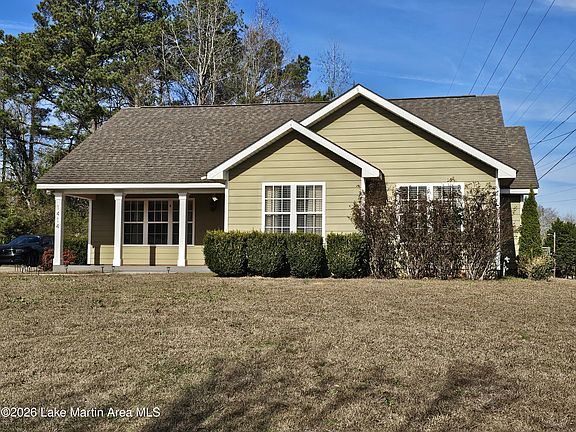 Room to play! Space to grow! Discover the perfect blend of comfort and style in this 3 BR, 2 BA home built in 2010. With about 1984 sq. ft., this home features a stunning wooden A-frame ceiling with 4 built-in stereo speakers, gorgeous hardwood flooring and a gas log fireplace in the great room. The kitchen features stainless steel GE appliances that are less than a year old (including a brand-new LG dishwasher) and flows into a large, versatile bonus room. This inviting space is perfect for the ultimate playroom, home gym, theatre, or a second living area where family and friends can gather. For the owners, the master suite is a true sanctuary. This room is large and features a wooden tray ceiling with adjustable mood lighting to help you relax at the end of a busy day. The master bath is a standout feature, boasting a custom-built tiled walk-in shower, a deep garden tub and double vanity. Bedrooms 2 and 3 share a fully functional bathroom. Step outside into the large, fully fenced backyard with a concrete patio where your family and pets can roam and play with privacy and security. Always know what is happening on your property with a self-monitored Ring doorbell and eight 4K cameras. The property includes a 24'X11' storage building providing ample storage and two extra lots (1.37 acres in total) that are ready for whatever you desire. You could grow that large garden you've always wanted or add a pool for the family. The proximity to dining, schools, parks, shopping, medical care, Lake Martin and so much more provides added convenience and will save you hours upon hours of travel time. If you've been searching for a home that offers both modern convenience and generous outdoor space, WELCOME TO YOUR NEW HOME! I encourage you to set up an appointment to see everything this property has to offer. You will appreciate the care given by the owners and the luxury feel.