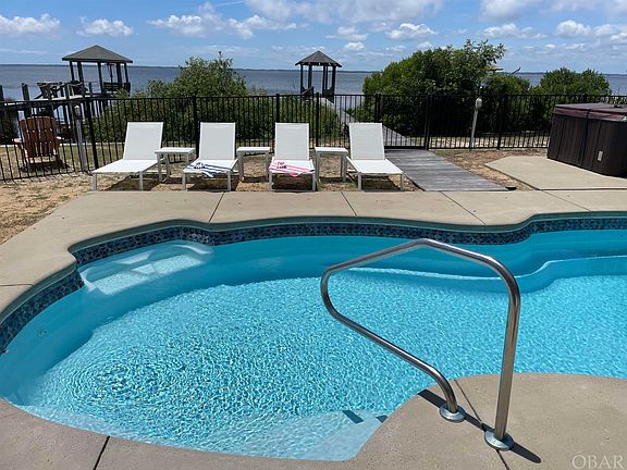 Experience breathtaking sunset views from this exceptional property nestled in the highly sought-after community of Sea Tern, Duck. Boasting four bedrooms, this soundfront oasis is a rare gem offering unparalleled luxury and convenience. Step into "Coastal Distancing" and immerse yourself in a wealth of amenities designed to exceed every vacationer's expectations. Enjoy leisurely dips in the private pool, direct access to the pristine beach with parking, a charming pier complete with a gazebo, indulgent moments in the hot tub, and views of the sound. Experience breathtaking sunsets over more than 65 feet of bulkheaded waterfront. Recently renovated in 2022, this home showcases a stunning, reimagined kitchen adorned with leathered granite countertops, soft-close doors and drawers for ample storage, a spacious island with seating, and top-of-the-line stainless steel appliances. Luxury vinyl flooring and fresh paint tie the aesthetic together seamlessly. The newly appointed bathrooms feature elegant marble vanities, ensuring the utmost comfort for your guests. Solid doors adorn each bedroom and bathroom, while attic storage provides practicality. Recent upgrades including new furniture, lighting, ceiling fans, a 12x16 patio in the pool area, polywood dining set, rockers, smart TVs, and a gas grill enhance the overall experience. Although sparingly rented by the current owners, this property is poised to excel as an investment opportunity or second home. Its projected rental performance promises lucrative returns for discerning buyers. Don't miss out on the chance to own a slice of paradise in Sea Tern, Duck—this home epitomizes coastal living at its finest.
