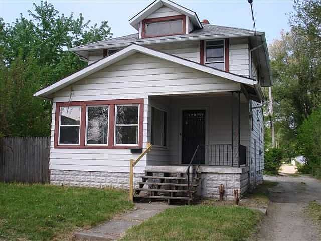 1.5 story with garage and basement- garage is newer. Hardwood floors. Vinyl windows. Carpet and Bathroom renovations needed.
