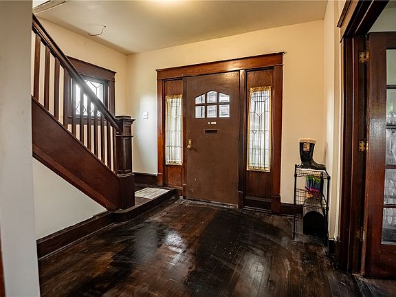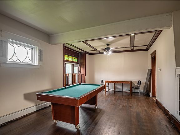 This stately brick residence offers abundant space throughout. It features a private enclosed front and rear porch, as well as an open porch where you can savor your morning coffee. The entry leads to a spacious living and dining area, with original wooden flooring, elegant glass windows, and a charming window bench. Take note of the homes high ceilings. The kitchen is equipped with ample cabinet and countertop space, and new vinyl flooring. Upstairs are four sizable bedrooms, one with attached access, and a full bathroom updated with new vinyl flooring and a modern vanity. The dry basement provides a new shower, a separate toilet and vanity, and the newly installed boiler and concrete floors, complete with laundry connections. An extra room offers potential for a home office or additional living space. Plenty of storage throughout. Outside, the expansive fenced backyard is ideal for gatherings and outdoor fun. A detached two-car garage and an extended driveway offer plenty of parking.