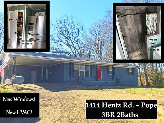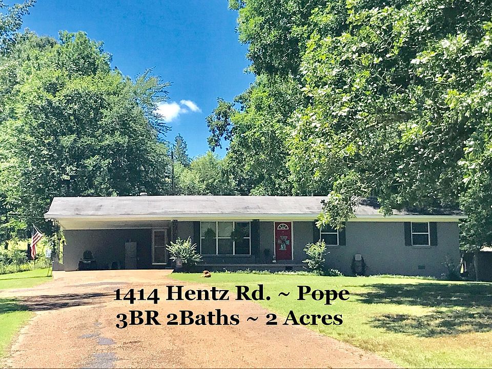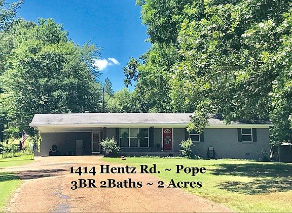 Click on the VIRTUAL TOUR! With a quiet country setting in the Pope School District, this home sits on two acres at the top of a hill with sweeping views all around. It has a lovely backyard patio, large laundry room, open floor plan with sun room, and a newly remodeled master bath featuring a beautiful wood grain tiled shower. It's conveniently located about a mile off of the interstate and just a few miles from Pope School! The roof was replaced in 2003, and the windows and HVAC are both brand new! It has central electric heat and air and has additional propane wall heaters in case of power outages. Be sure to click the virtual tour!