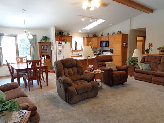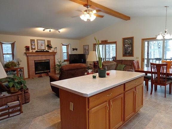 Lake front with an additional lake view. Watch the sunrise over Bass Lake in the morning from your covered porch and then the sunset on Little Bass Lake from your master bedroom! This home sits on a private nearly 2 acre lot offering nature and serenity on recreational lake. The interior has vaulted ceilings, skylights, solar tubes, and is open concept with a cozy fireplace. Master has a in en suite and the lake view!Lower level is a walk-out with a finished rec space, easy for coming in off the water as well as a half bath that is already plumbed for a shower. If you are looking for a weekend cabin or a great place for daily living not too far from town then this is the place for you! Come see it today!