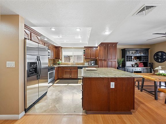 Sparkling pool home with breathtaking golf course view!!! This beautifully upgraded home features 4 bedrooms and 2 1/2 bathrooms. Remodeled island kitchen with granite counters, stainless steel appliances complete with trash compactor. Family room boasts vinyl wood flooring, french doors from eating area as well as from living space. Sumptuous master suit complete with cozy fireplace and french doors to pool and jacuzzi. Remodeled bathroom. Remodeled Master bathroom with large walk in shower. Remodeled powder and guest bathrooms. Large secondary bedrooms. New roof, HVAC and vinyl fencing. Solar is leased and transferable. Enjoy the summer in your sparkling pool and spa while taking in the golf course view. Extra parking in driveway... and so much more!! Hurry on this one!!!
