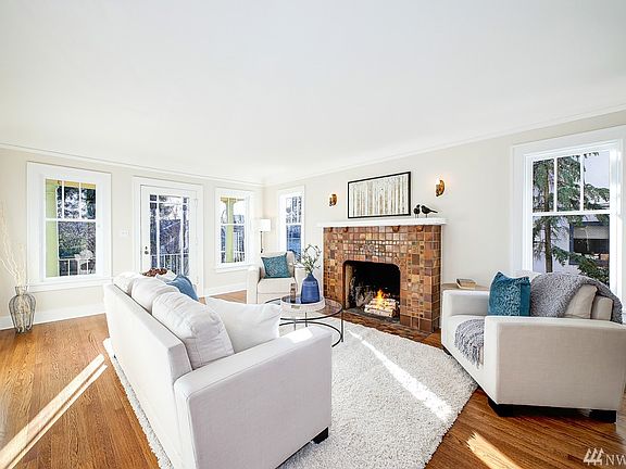 Perfectly perched above the street, this stylishly updated home offers just the right balance of history & updates. Bathed in natural light offering plenty of shelter-in-place space both inside and out. Refinished hardwoods & Batchelder tiled fireplace provide warmth & welcome. The sweet floorplan is well suited for todays 'everything from home' environs with 3 human sized bedrooms, 2.5 baths, lower-level media/flex, loads of storage & garage. Strollable to the coveted amenities of Wallingford & Fremont: Great eats, groceries, Lake Union, parks & schools.