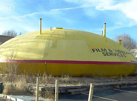 This is a dual-zoned C-5 property that has been used for commercial and is taxed as commercial. But it could be converted to live or live work space. It is a 52' Dome with high ceiling and no support beams inside for total flexibility inside. The only windows are in the entry, which doubles as a storefront. There are 3 ceiling port holes for skylights, which are not currently installed. Wall and roof are a continuity of a type of concrete. Room dimensions approximate as the rooms are not rectangular.
