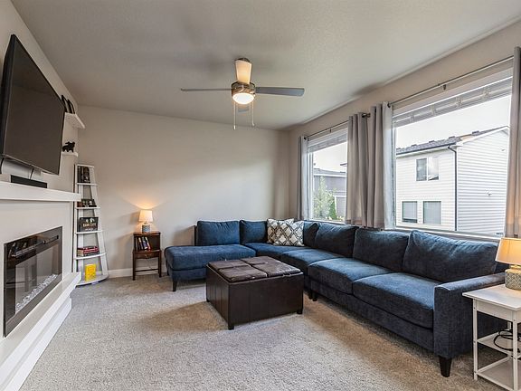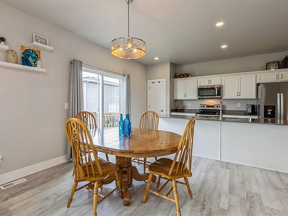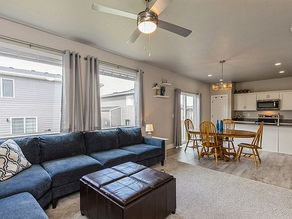Absolutely immaculate one owner modern two story in newer Grimes neighborhood with over 1600 finished square feet! First floor features open white kitchen with enormous center island, stainless steel appliances, pantry and broom closet. Oversized dinette leads to family room with huge picture windows and fireplace. Second story includes 3 spacious bedrooms, ALL with walk in closets. Large primary suite boasts large walk-in closet, attached en suite with oversized vanity, shower with seat and PRIVATE covered balcony! Lower level features room to grow with oversized egress window, stubbed for ¾ bath, plus tons of storage. Don’t miss the near perfect garage with finished walls and epoxy floors!!