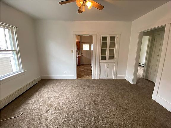 Enjoy one-floor living in this perfect-sized ranch. This home features large rooms, a full basement, a newer roof and windows, a detached garage, and a large covered front porch. Fresh paint and new carpeting throughout. Starting out? Downsizing? A great house to live in or add to your investment portfolio.