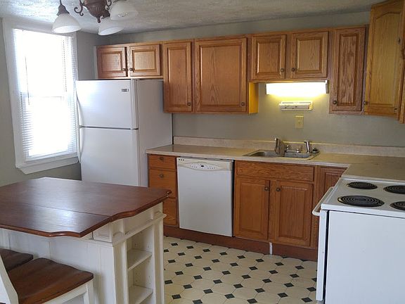 Move in ready! Clean and fresh 2-3 bedroom. Rooms are large. New paint throughout. Quiet neighborhood. Small fenced back yard. Low taxes. Electric stove, refrigerator, dishwasher, center island included. New mini blinds, ceiling fan and flooring. Family and pet friendly. Off street parking. Full clean and dry basement with laundry hookups. Front and back doors for easy access. Attic space for storage. This is one half of a duplex currently being rented for $675 + utilities. This unit has always been a strong cash flow investment. The other half is owner occupied.
