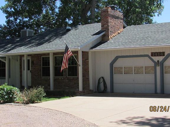 Gorgeous property in the heart of Lincoln Park. This home has been meticulously maintained and cared for. Upon entering the home you will be welcomed by a beautiful brick wall fireplace in the living and a view into the sun filled dining area which adjoins a convenient kitchen with ample counter space and stainless appliances. A hallway leads from the living room to bedrooms, baths and a large master suite with 4 piece master bath with a large soak tub. A door from the master bath leads to a deck, overlooking the private back yard area. An office/den or exercise area adjoins the master suite. There are 2 additional bedrooms, a full and a 1/2 bath. A spacious garage is accessed from the dining room. The home is heated with hot water baseboard heat and cooled with evaporative air conditioners. A leaf guard system is installed on the gutters. This fertile, lush lot is on sprinkler system front and back and has 7 shares of Crooked Ditch water. There are several storage building and a loafing shed. Grape vines and arbor, fenced garden areas, fruit trees and an abundance of perennials and flowers. There is a drive through gate along the west side which accesses the back yard and RV or toy parking with electric available. This delightful property has so much to offer.