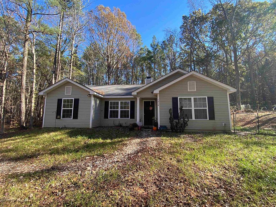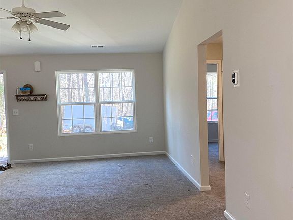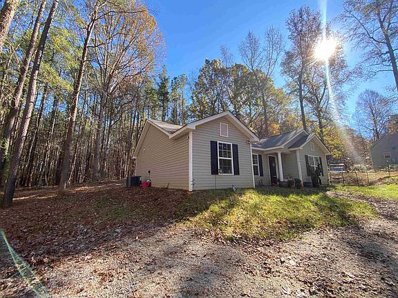 Cozy single-family, recently built smart home. Nestled comfortably on a private dirt road in a wooded location. This home features a wood burning fireplace, vaulted ceilings, a fenced in side yard, a beautiful view of forest to watch the wildlife, and lots of natural light. Tucked off the beaten path, but still only 25 minutes from Raleigh and Durham, and fully functioning smart features. Please remove shoes before showing.