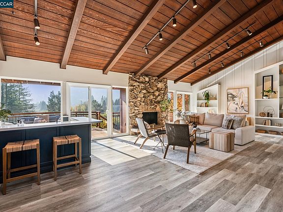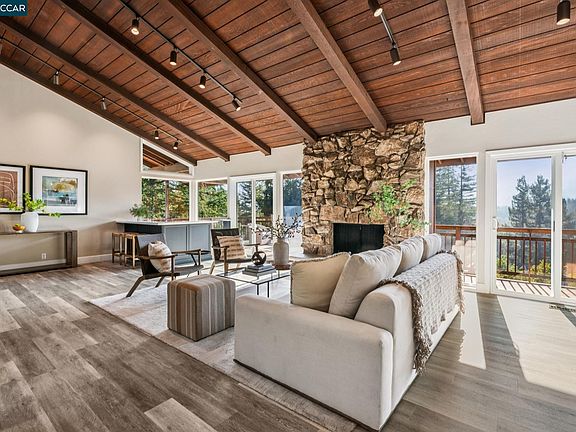 Modern Contemporary Retreat with Stunning Valley Views. Perched at the top of a secluded driveway, this home offers style, serenity, and sweeping views of the valley and surrounding hillsides. Expansive windows and vaulted ceilings fill the great room with natural light, creating an airy, inviting space ideal for both everyday living and effortless entertaining.The renovated kitchen blends clean lines with fresh finishes, offering an ideal backdrop for gatherings or quiet meals at home. Thoughtfully designed to maximize comfort and connection, the home’s open floor plan highlights its picturesque outlooks from nearly every room. The beautifully landscaped lot offers a pool, lush plantings and plenty of room for outdoor enjoyment. All this in an excellent, close-in location—just minutes to shopping, dining, BART, freeways and outdoor recreation—while still feeling like an exclusive hillside escape. A rare blend of contemporary design, seclusion, and convenience.