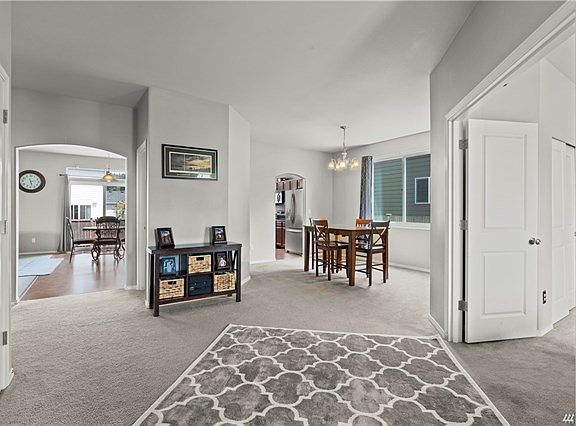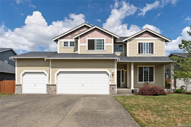 Spacious 5 bedroom home with views of Mt. Rainier, neighborhood playground and local walking trails. Main floor has large kitchen with island and quartz counters, stainless steel appliances, dining room that opens to a large living room, formal dining space and utility room that leads to the 3-car garage. Main floor room can be used as 5th bedroom or office. Upstairs level has master bedroom with master bathroom and walk-in closet, 3 more bedrooms, another full bathroom and a large bonus room.