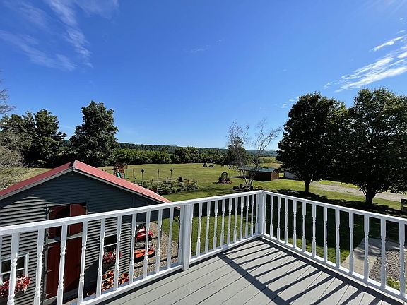 This 4 bedroom, 2 bath country styled home sits on 2.4 acres and is located on a quiet dead end road. Upon arrival you will immediately notice the meticulous upkeep the owners have put into the property outside. The large yard includes a perennial garden, a utility barn, and two storage sheds which one is heated and has electric. Inside, the 1st level includes an office or mudroom, living room, formal dining room, a large eat-in kitchen w/island, three bedrooms, two full bathrooms, and a washer & dryer area. The second level offers a beautiful family room along with a deck that oversees the yard. Some amenities this stunning home offers are central air, newer vinyl windows, and gorgeous woodwork.