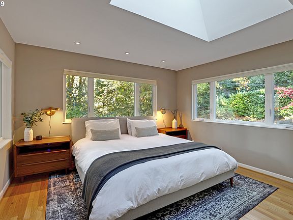 Elegantly understated, updated mid-century in West Highland. Live immersed in nature with stunning panoramic windows overlooking beautiful tree views on .61 acres of forest. This childhood home of former Gov. Tom McCall maintains classic mid-century style with open floor plan, large skylights, and hardwood flooring while also offering thoughtful modern touches throughout. Quartz Countertops, SS Appliances, New 96% Hi-Eff Furnace. [Home Energy Score = 8. HES Report at https://rpt.greenbuildingregistry.com/hes/OR10155783]