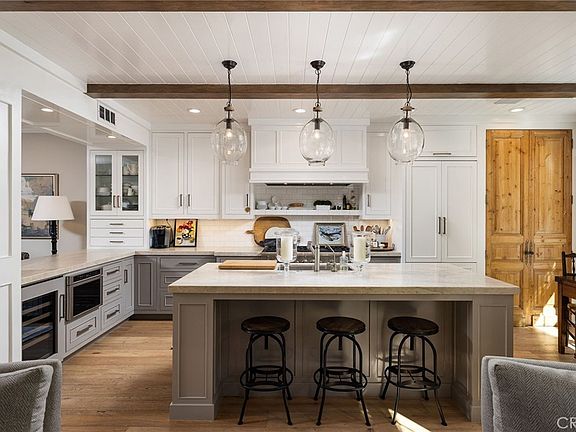 - Beamed Ceilings, Breakfast Bar, Built-in Features, Breakfast Area, Crown Molding, Separate/Formal Dining Room, High Ceilings, Open Floorplan, Pantry, Paneling/Wainscoting, Stone Counters, Recessed Lighting, Storage, Unfurnished