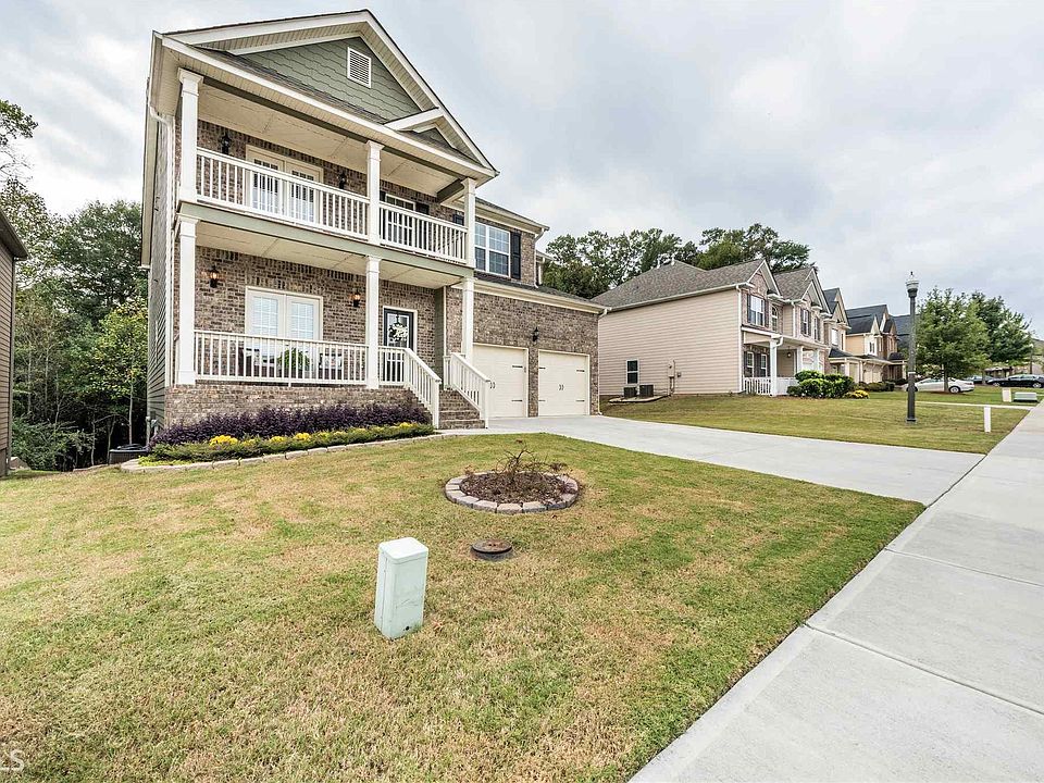 Look no further! This 5 bed/3 bath brick front home is complete,with inviting front porch that is amply-suited to receive your guests or welcome you home! The upper-level porch is stately in appearance; yet perfect for relaxing. Inside you will find a 2-story foyer, with an open layout and overall functional 'flow'. The kitchen is an entertainers 'dream' with unobstructed 'sight-lines' to the den & dining area. Over-sized 'master' bedroom with separate closets, spacious secondary bedrooms;each with 'walk-in' closets, & vaulted ceilings.Basement ready for customization.