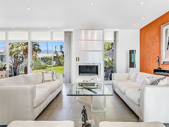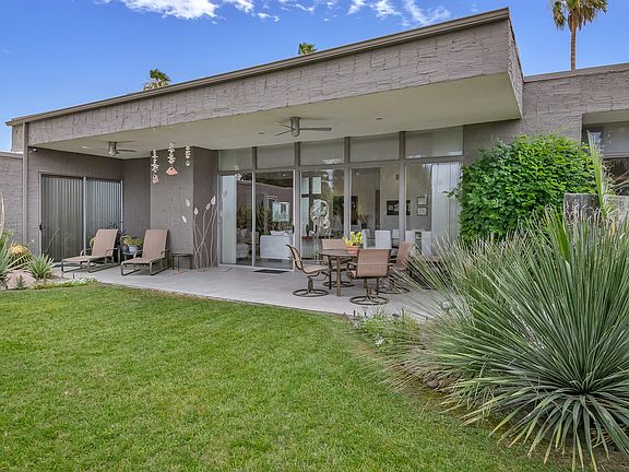 Fabulous home in Tamarisk West-phase 3. Lovely mountain views with green belt and nearby community poolspa. Two master bedrooms, one with an attached state of the art exercise room. The third bedroom is used as a denofficebedroom with sofa beds. All three bedrooms have walk in cedar lined closets with built in drawers and ensuite baths. The kitchen has it all beautiful custom cabinets and top of the line stainless appliances. Fabulous contemporary furnishings. Sound system through out. Outdoor Brown Jordan furniture. Leased Solar saving you $$$ on your electric utility bill. Check out the 'Video Tour' and 'Documents' showing all the home's deluxe features.