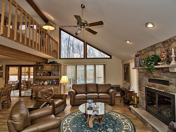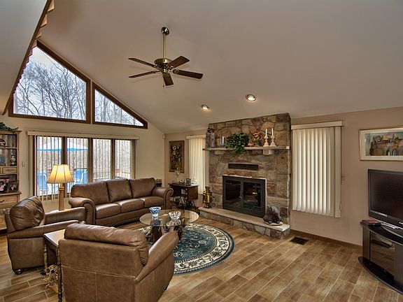 ONE OF A KIND! This beautiful contemporary home offers a unique floor plan, with spacious rooms and notable interior upgrades. Offering 4 large bedrooms and 3 baths, modern kitchen with granite counters and a floor to ceiling stone fireplace in the living room. The kitchen, dining and living room area feature a luxurious wood grain ceramic tile throughout. The bedrooms and lower level all have newly installed wall to wall carpeting, the home also offers a large Florida room and hobby/craft room