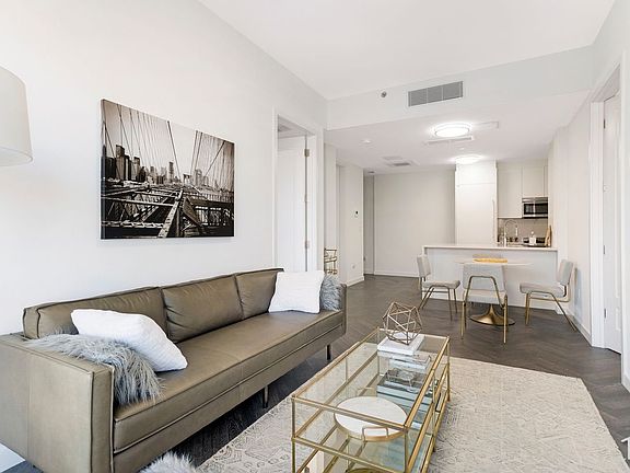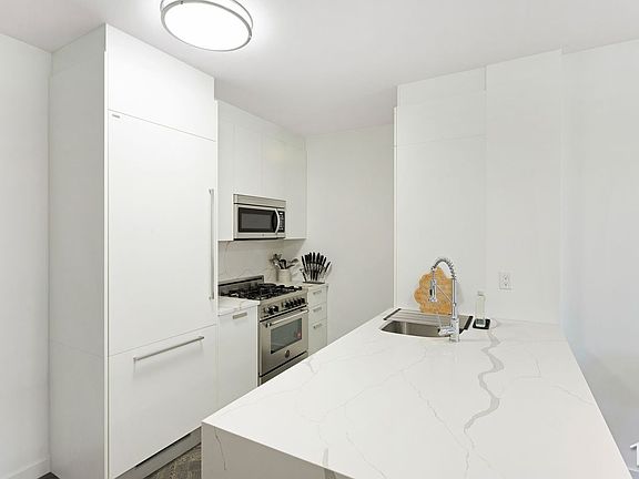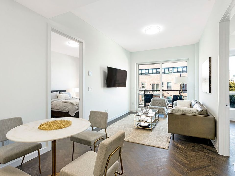 Welcome to Bensonhurst's premier luxury building, The Jade Condominium. Enter into the double height ceiling lobby and take the elevator up to the home of your dreams. The largest 2 bedroom line in the building, apartment 4F is a two bedroom, two bathroom with a large private balcony (84 Square Feet). Private deeded parking is also available for sale for an additional $50,000. The sundrenched apartment features gorgeous engineered Herringbone hardwood floors, soaring 10 foot high ceilings, and an open living area. The chef's kitchen features an island with seating, custom Italian cabinetry by Scavolini, gas oven & microwave by Bertazzoni, and paneled refrigerator and dishwasher for a sleek finish. The luxurious bathrooms feature TOTO fixtures, Scavolini vanities, and Grohe showers / baths. The dedicated laundry closet includes washer/dryer combo, and a Navien tankless instant hot water heater. Plenty of storage space throughout, including a walk in closet in the master bedroom. Heating and air conditioning is provided by Mitsubishi smart concealed split systems. There is also an additional storage closet in the garage. Jade's amenities include elevator, virtual doorman, package room, secured garage parking, a state of the art fitness center ,and an oversized furnished roof deck equipped with a wet bar and BBQ grills, perfect for entertaining.