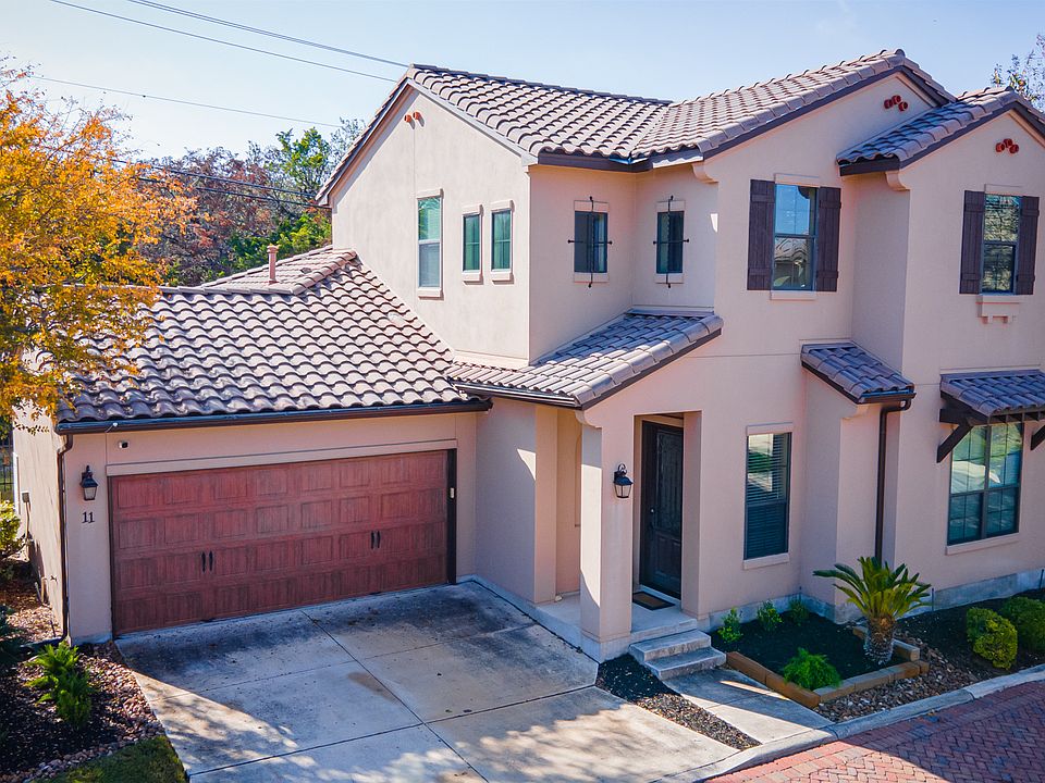 *Seller is offering 5k in seller paid concessions.* *HOA fees cover ALL ground maintenance.* Recently replaced: 4 ton evaporator coil, 10 yr warranty | Welcome home to 1414 W Bitters Rd Bldg 11, located in the highly desirable gated community, The Sentinels at Bitters Point Villas. This impeccably maintained community is located in the heart of W Bitters Rd between Blanco and Huebner Road, providing easy access for major highways, shopping and entertainment. This exquisite Mediterranean style villa boasts wood floors throughout with a welcoming open floor plan. Other features in this home include Douglas Fir beams, granite countertops, a flawless gated courtyard that overlooks the green belt and brick paved roads throughout the community.
