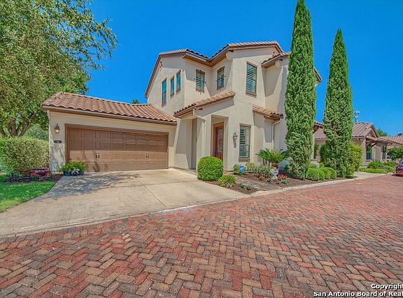 Immaculate and perfect down to every possible detail! Gently lived in, original owner home with incredibly low maintenance for a "lock and leave" lifestyle. Easy access to major employers, shopping, restaurants, entertainment and the San Antonio airport. Chef's appointed kitchen with gleaming granite, island kitchen, abundant counter and cabinet space, tile backsplash, stainless steel appliances, walk in pantry and showcase cabinets with glass fronts at the wine bar area. Separate formal dining room could very easily be a study at the entrance with french doors and tons of natural light. The family room is accented with architectural beams, wood floors and gas fireplace. Plantation shutters and crown molding throughout increase the elegance and enhance the aesthetics. Outdoor entertaining is a breeze with mounted TV, covered patio and plenty of deck space for BBQing on the weekends.