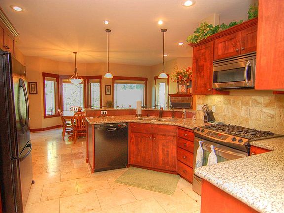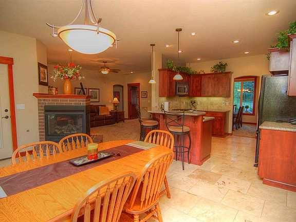 Designer Custom home near the Kalispel Golf & Country Club. One level Rancher in a quiet neighborhood. Gourmet kitchen, dual sided fireplace, covered back deck. Master suite has two closets. 3 bed, 2 bath with a bonus office/computer room.