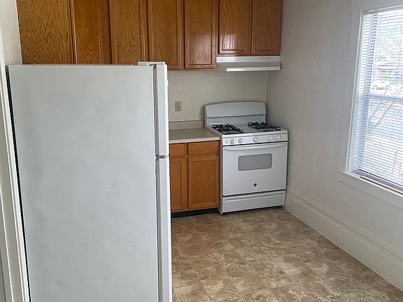 Studio apartment on second floor. Clean ready to go. Kitchen includes gas stove and refrigerator, room for a kitchen table. Bathroom has standup shower. Large closet. Studio room is large. Plenty sunlight from windows. Please call property owner for application and viewing. Rental is Month to Month. Looking for a long term tenant. Unit is on second floor. Street Parking. Water, Garbage and sewer included.