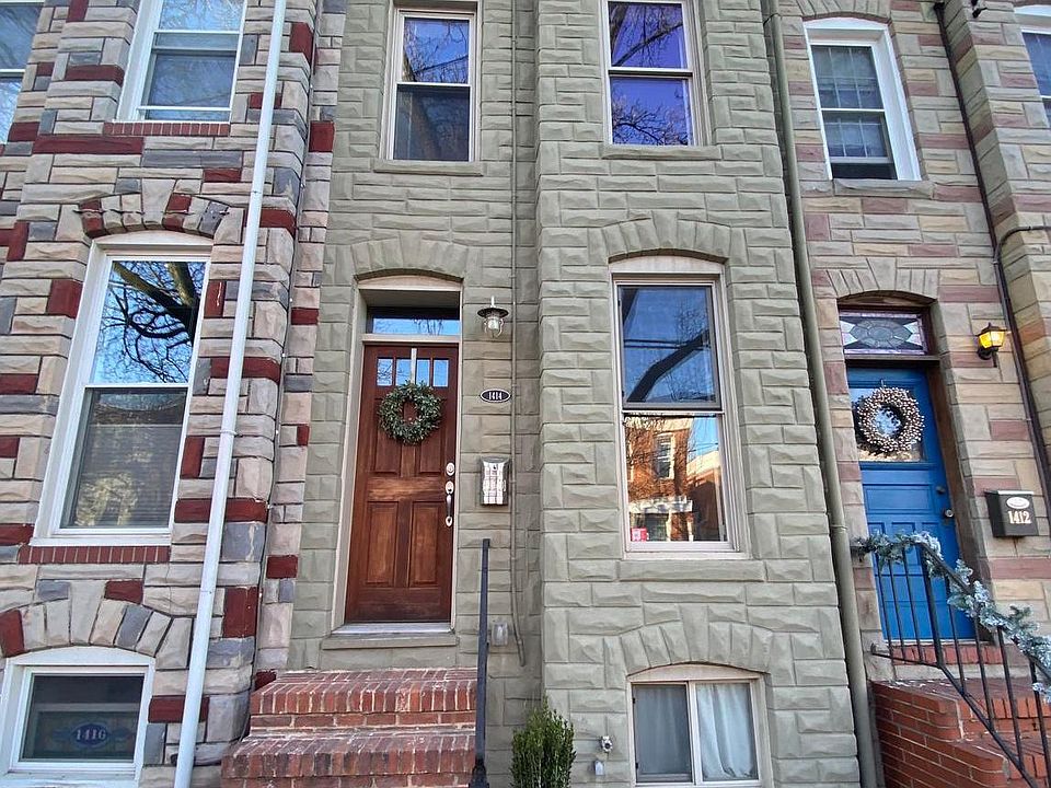 CONTRACT DEADLINE 3PM MONDAY FEBRUARY 12TH Welcome to your new home at 1414 Woodall St.! This charming residence features 3 bedrooms and 2.5 baths, exuding warmth and elegance with its exposed brick walls and wood flooring throughout. Step inside to discover a thoughtfully designed layout, courtesy of the esteemed local developer, John Bolster. He ingeniously reconfigured the first level, placing the sunken living room at the rear to maximize natural light exposure. The living room is adorned with a sleek polished concrete floor, while the kitchen boasts stainless steel appliances, a custom Bolster-built island, and a convenient closet with a stylish barn door. There's also ample space for a dining area, situated at the front of the home. Step outside from the living room onto the charming bricked patio, perfect for relaxing or entertaining. And let's not forget about the included PARKING, a rare find in this desirable neighborhood plus additional alley parking! Upstairs, the second level features a spacious primary bedroom complete with an ensuite bath, a convenient laundry closet, and a well-appointed second bedroom with its own hall bath featuring a custom-built vanity. Venture up to the third level, where possibilities abound. Whether you envision it as a bedroom, office, or entertainment space, this versatile room offers endless potential. But the real highlight awaits just outside – a fabulous roof deck offering stunning views of the skyline and water, sure to become your favorite spot to unwind and take in the scenery. The seller already misses living in this home and is confident that the next lucky homeowner will appreciate not only the location but also the welcoming community and the abundance of amenities nearby. From the convenience of Royal Farms and Starbucks to the historical allure of Fort McHenry, along with easy access to Key Hwy, I95, Tide Point, and all the local hotspots that make Locust Point so special, this neighborhood truly offers the best of city living." Don't miss the opportunity to make this exceptional home yours – schedule a viewing today! PLEASE LEAVE LIGHTS ON THE MAIN LEVEL OF THE HOUSE.