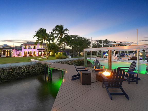- Exterior features: Built-in Barbecue, Custom Lighting, Open Balcony, Outdoor Kitchen, Dock