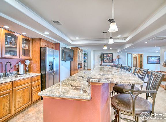 Upon arriving at this custom-built 4,000 plus square foot home on 4 acres, you will instantly fall in love with the beautiful views of the front range. This well-thought-out design provides several locations to relax or entertain from the outdoor patio living space and fireplace to the expansive family room with a well-equipped bar and entertaining area with a walk-out patio to take in the beautiful views of the mountains. Features a 1,728 SqFt Outbuilding for cars & toys. $50/mo for all water!