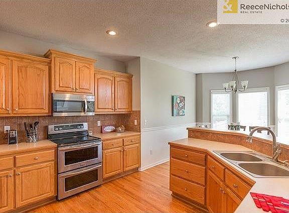 Spring on in to this "Sunsational" 2 sty/1.5 w/bdrm & full bath on the 1st flr. Open & bright w/wall of windows in the great room, formal dining, large kitchen w/tons of cabinets & counter space, S/S appliances, hardwood flrs, new carpet, fresh paint in & out, new HVAC, updated master bath w/ceramic tile, floors & shower, finished basement w/huge family/recreation or media rm, office or non conforming 5th bdrm. Sprinklers,flat driveway, fenced yard, awesome Olathe schools. Regency, California Trail & OE High!