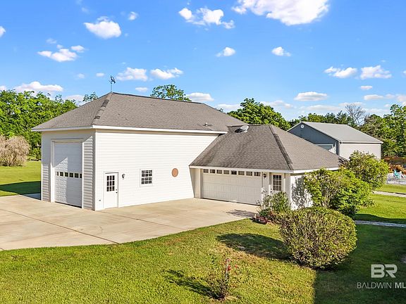 Sitting on 1.47 acres this 3-bedroom 2-bathroom one owner custom built, is a rare find in beautiful Fairhope Alabama. Equipped with a 1671 Sq ft newly painted RV Garage with additional car garage and roll up doors. The building includes RV hooks and can be used for a verity of needs: workshop, boat, or equipment storage. The floor plan is lovely and it includes an office, dining room open to the large living area with gas fireplace. The kitchen is open to the breakfast room with 2024 gas range and connected to the 19 X 15 enclosed back porch. Tile flooring, cased windows, and crown molding elevates the home. Custom features are found throughout: utility room with sink, tray ceiling primary bedroom, and painted garage floor. The primary bathroom includes dual sinks, separate walk-in shower, soaking tub, and 10 x 8 safe storm room with FEMA rated door. Gorgeous mature landscaping is found throughout the property including a Confederate Rose. Buyer to verify all information during due diligence.