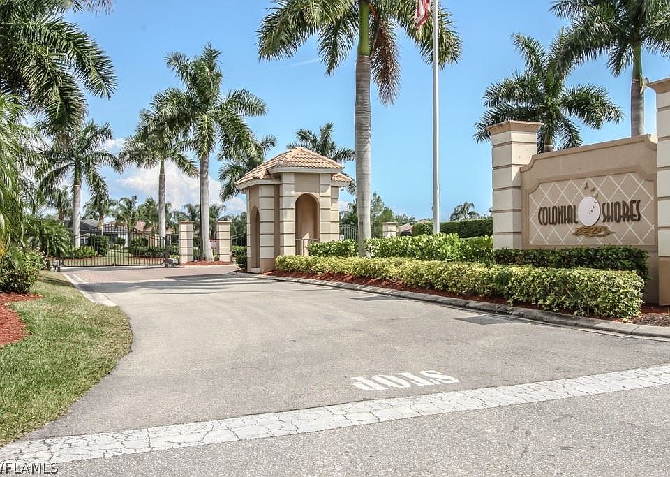 Location, Location, Location! Colonial Shores is a quiet gated community within minutes of some of SW Florida's favorite beaches, Sanibel Island, Captiva and Fort Myers Beach. This home features a spacious split floor plan with three bedrooms, plus a den. Kitchen has upgraded cabinets and stone counters. Diagonal tile floors in main living area and wet areas. High ceilings and triple sliding doors opening to the screened in lanai with heated pool. The master suite also overlooks the pool and features a master bath with separate tub and shower as well as duel sinks. Enjoy entertaining for any size party with an eat in kitchen, to include breakfast bar or in your formal dining room. The outside of the house and lanai have just been painted.This house is on oversized corner lot. Community also features a community pool, play area, exercise room and clubhouse.