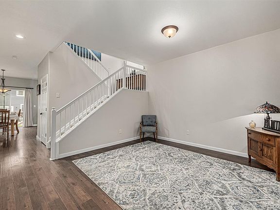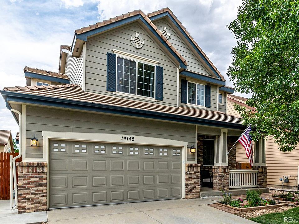 Looking for a new home? This beautiful two-story home in the desirable Foxton Village is the one! Providing 4 beds, 2.5 baths, lush grassy landscape, and a 2-car garage with an overhead storage rack. Charming curb appeal with brick accent facade and a welcoming front porch. Discover a fabulous interior showcasing a fresh designer palette, abundant natural light, wood-look tile flooring downstairs, and soft carpet upstairs. The formal living room will greet you upon entering and you'll love the additional entertaing space that features a fireplace for chilly nights. This space perfectly flows into the eat-in kitchen, creating an ideal space for entertaining! Stainless steel appliances, ample gray cabinetry, recessed lighting, and a butcherblock island make up the culinary space. The sliding doors merge the inside & outside activities. Venture onto the upper level, where the well-appointed bedrooms await! The primary bedroom has an ensuite with dual sinks, a soaking tub, a glass-enclosed shower, and a walk-in closet. Upstairs also features 3 additional bedrooms and an additional full bathroom. Need more room to grow or create your dream space? The unfinished basement holds endless potential for a home gym, theater, or game room! Check out the large backyard with brand new sod with a relaxing patio, excellent for having fun BBQs or peaceful evenings under the stars. Home also features a new AC, furnace, and water softener within the last 2 years. Ideally located near schools, shopping, and restaurants! Also including an array of recreational destinations like Barr Lake State Park, Rocky Mountain Arsenal Wildlife Refuge, Buffalo Run Golf Course, and Bison Ridge Recreation Center. Plus, with quick access to DIA, travel is a breeze! Don't miss your chance to live in comfort and convenience—this home truly has it all!