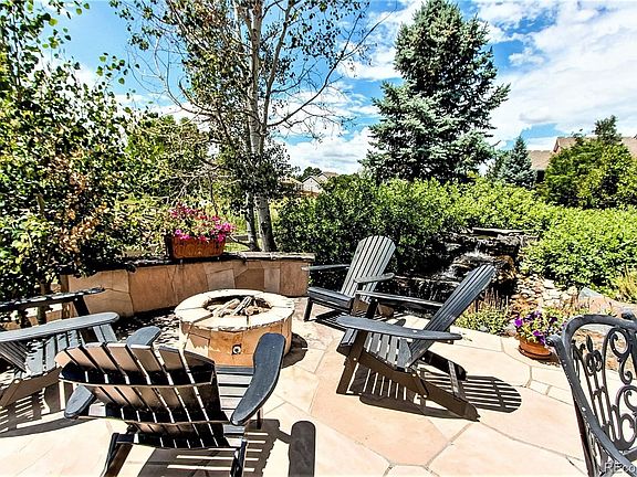 This home is a rare gem in the highly desirable Broadlands Community... You truly feel the beauty of living in Colorado with the open space behind this house.With a lake, creek and bridge, it is truly serene. The gorgeous trex deck off the kitchen will be one of your favorite places to enjoy your morning coffee. You 'll love the beautiful trees and hearing the birds sing and know that you're home... As you walk in you'll notice the high vaulted ceilings, the warm paint throughout and the lovely open formal living and dining room. When you walk into the gorgeous kitchen with white cabinets, stainless steel appliances, and a large island, you'll see lots of windows and light coming in. The family room and kitchen are all open and have big windows looking out to the gorgeous open space behind you. When you go up the beautiful spiral staircase, you find a large master bedroom with it's own gas fireplace and large 5 peice master bathroom with a huge walk-in closet. The other 3 bedrooms are spacious and big and the 3rd one has it's one bonus room and connected bathroom. Great space for a large family. There's also a perfect guest bedroom and bathroom on the main floor for visitors or another kids room.. Then when you go into the basement, you'll love the walk-out to the back patio area, so much light and great for entertaining.. It offers a bar area, great room, family room with stone fireplace, another bedroom and a play room and craft or workout room,in addition to having lots of storage! This home has it all, but the backyard with a large flagstone patio, amazing waterfall and built-in firepit, truly makes it remarkable and one of a kind!! You won't be disappointed! Great schools,golf course, pool and trails all nearby.