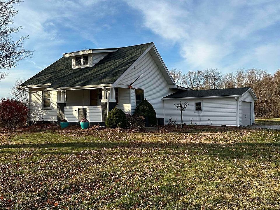 Cozy Cape Cod style home with a beautiful country setting on 2 Acres Southwest of Jasonville. With an open concept feeling this home is inviting to all who enter. The spacious living room opens into the eat-in portion of the kitchen that has the perfect amount of space for a kitchen or dining room table. The kitchen has many cabinets, and includes all appliances. Washer and Dryer included as well. There is also a basement with an area that could be used as a bonus space as well as another half that is great for storage. The home was updated completely approx. 15 years ago, however, the front half of the roof is 1 year old. The home is also total electric. Outdoors is a large open field surrounded by trees that can be seen perfectly from the back deck that would be great for entertaining.
