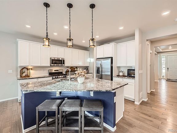 Sellers are ready to help make this home yours by offering 2-1 INTEREST RATE BUY-DOWN WITH PREFERRED LENDER, making your journey to homeownership even easier!! Welcome to this stunning two-story home in the highly desirable Lewis Pointe neighborhood, located within Adams 12 Five Star Schools district. Boasting 3133 sq. ft. of finished living space plus a 1295 sq. ft. unfinished basement, this home perfectly blends style, comfort, and potential for growth. Step inside to discover luxurious vinyl plank flooring, elegant white cabinetry, and granite countertops throughout. The chef's kitchen featuring stainless steel appliances, a gas stove and updated pendant lighting over the spacious island. The open-concept living area centers around a cozy fireplace, while the main-floor office provides an ideal work from home space. Upstairs, a spacious loft offers versatility for media room, play area, or additional living space. The primary suite is a true retreat with a spa-like five piece bath. The Jack and Jill bedrooms share a beautifully designed bathroom, and additional bedroom and full bathroom provides further flexibility for guests or family. Enjoy outdoor living on the covered back patio, and take advantage of the tandem three-car garage for extra storage. Don't miss your chance to call this exceptional property your home.