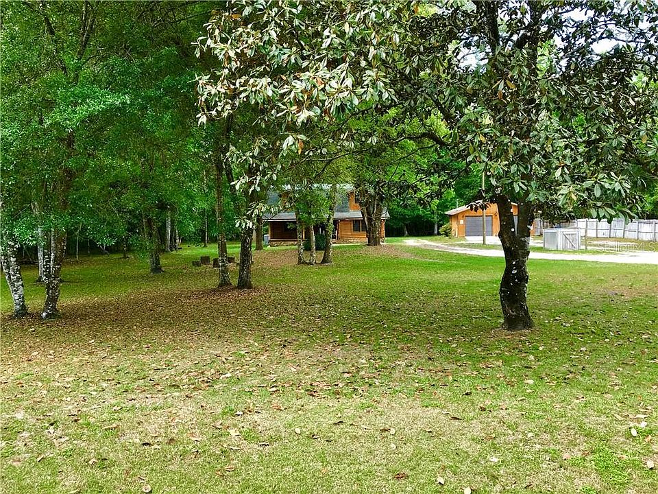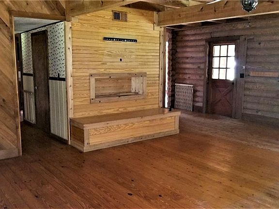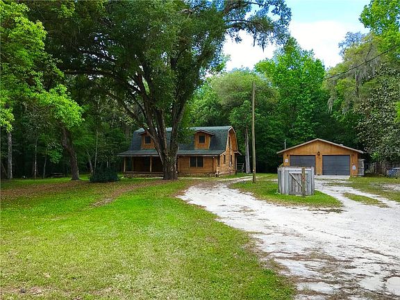 Step back in time and enjoy the benefits of country living and enjoy a peaceful laid back lifestyle! This lovely log cabin is nestled amongst tall pines and oak tress and situated on one and half+ acres. The interior has log walls, wood floors and beamed ceilings. There is a large country kitchen with separate dining room, laundry room and half bath. Upstairs are three good sized bedrooms and two full baths. Open porches at the front and back just need the rocking chairs to welcome you home. There is a 1200 square foot 2 car garage which has full power and is heated space which has been divided in such ways that you can use part as a two car garage and make the man cave or she shed out of the other half. This unique property is a must see!!