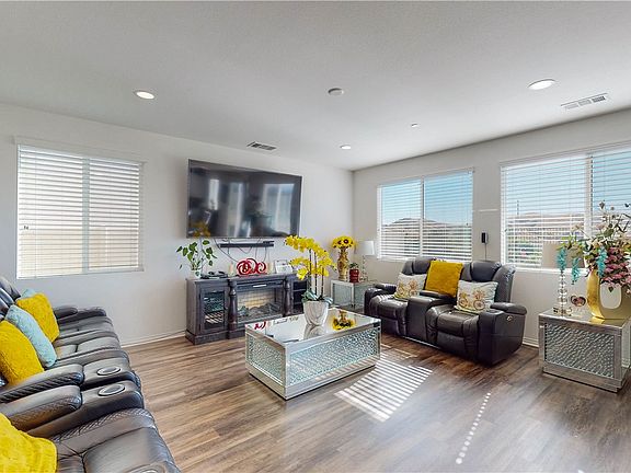 Now is your chance to own a STUNNING two story 5 bed, 3 bath home with great curb appeal, PAID OFF SOLAR, and an amazing mountain view in the highly desired Olivewood gated-community. Coveted luxury vinyl plank flooring flows throughout most of the space while an abundance of windows and bright white recessed LED lighting throughout this spacious open floor plan make this home feel even more pristine. The Chef’s Kitchen features stunning granite countertops, stainless steel appliances, a large island with seating, plenty of cabinets and a large walk-in pantry. Downstairs you will also enjoy a bedroom, full bath and office. Make your way up the stairway to your open loft, convenient upstairs laundry room, three secondary bedrooms, another full bath, large Master Bedroom and adjoining Master Bath with dual vanities, tub, standing glassdoor shower, and a walk-in closet. The backyard has more than enough room to entertain family and friends! With an amazing view of the hills and community hiking trail behind your property, this space has a ton of potential. Other amenities include central AC & heating throughout, a three-car garage with epoxy flooring, as well as flat screen TV pre-wire packages in the living room, master bedroom and bonus room to easily hide cords within the wall. Located in the highly desired Olivewood gated-community with various amenities including hiking trails, pools, picnic areas, a clubhouse, playground, and more coming soon. Minutes away from the 10 and 60 freeways and various shopping centers, top rated schools in the Beaumont Unified School District, Morongo Golf Club at Tukwet Canyon, Beaumont Sports Park, Stewart Park (home to The Cherry Festival), Oak Valley Golf Club, Palm Springs Aerial Tramway and more. Your dream home awaits - don't miss out on this opportunity!