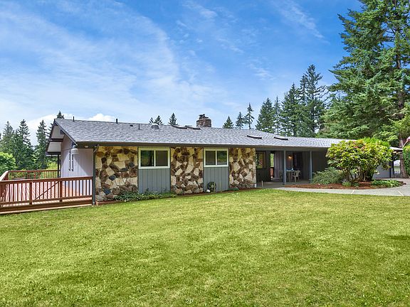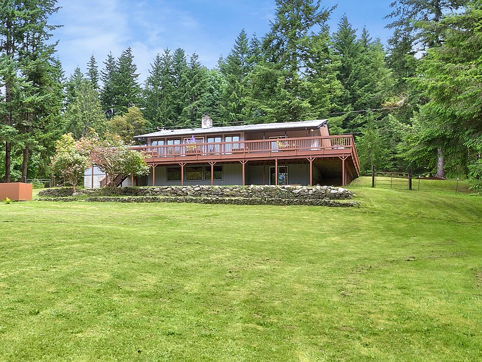 Beautiful home with a huge scenic yard. Private and peaceful. Watch the birds from the large wraparound deck. NEW ROOF! One-story home includes a daylight basement with bathroom and lots of windows. Large pantry, laundry room, and utility room. 2-fireplaces and space for a rec room, pool table or extra bedroom. Skylight and large windows in the living room and dining room. Room to build the kitchen of your dreams (with a view!). Across street from naval base, very private wooded area.