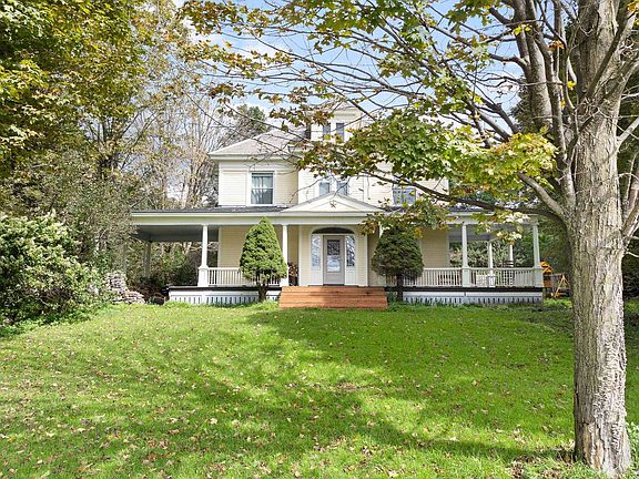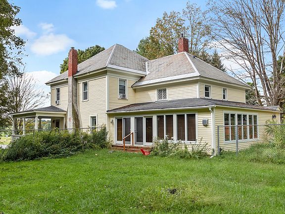 Tucked among tall pines, maples, voluminous blossoming fruit trees and gorgeous foliage, sits this large heavenly haven to call Home. This Greek revival boasts 4 bedrooms, a large private office (or 2!), a large chefs kitchen with stainless steel appliances, butlers pantry with “good morning”/utility/laundry stairwell, oversized living room and dining room with floor to ceiling cabinetry and bookshelves, an enclosed full season sun room with views to the courtyard and back enclosed kids/pet play yard. The large front wrap around porch is perfect for seasonal decorating and happy hour treats full of gorgeous sunsets, nesting birds, fireflies and peepers. See the stars in the sweeping back 4 acres with space for sports, hosting celebrations, and bonfires. Detached 2 car garage waits for your projects, organization, private office or studio! Walk the back trails to the Bushel store across the street for those last minute items or to order a favorite meal. Completely private yet close enough to neighbors who become dear friends. This rare gem has more to offer than you can imagine and brings the comfort of home and tradition to life! Conveniently located on same street as the elementary and middle school and down town community festivities. Incredible and competitive top rated CVSD high school is just a few miles beautiful drive away. Popular local coffee shop, restaurants and breweries are just down the road and a Burlington commute is just 26 minutes.