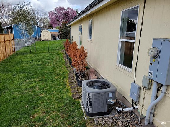 NEW ON THE MARKET! A HUGE completely fenced yard for entertaining or build that dream shop. This ONE LEVEL manufactured home offers 1,512 sq ft, 4 bedrooms, 2 bath, open concept w/ vaulted ceiling, eating bar & kitchen island. Plenty of parking on a flag lot. The detached garage is 432 sq ft (18x24) with work benches and parking on the side. NEW HVAC and water heater in 2021, roof is 2012 and full sprinkler system. 2 storage sheds included. Call for your private showing!