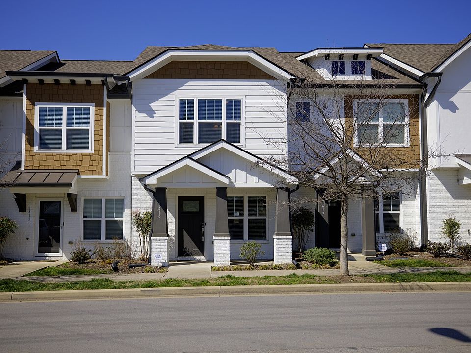 This charming townhome, nestled in the heart of the Nations, invites you to enjoy leisurely afternoon strolls to Frothy Monkey, 51st Deli, Southern Grist, and various shops and breweries. The main level boasts spacious comfort with high ceilings in the main living space. You'll find the kitchen with stainless steel appliances, a brand-new fridge, and a laundry washer and dryer through the arch walk. The two upstairs bedrooms have vaulted ceilings, each with an en-suite bathroom. The primary bedroom has two walk-in closets. The outside patio is fenced and large enough to make any dreamer's creative ideas come true.