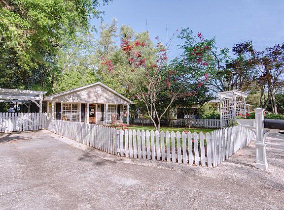 This Adorably Quaint Cottage in the Heart of Olde Towne Daphne is a mere 9 minute walk to Scenic Mobile Bay and just around the corner from Christ the King Church/School and Bayside Academy! Excellent Shopping and Dining Opportunities throughout the Eastern Shore are at your fingertips, as well as I-10 within an easy distance for Commuters! Gleaming Reclaimed Heart Pine Wood Floors & Split Brick Flooring span the entire home. Enhanced by a wood burning fireplace, neutral color palette & numerous windows, the open concept living/dining areas are beautifully inviting! Updated Kitchen features Granite Countertops, Subway Tile Backsplash, SS Appliances & Lengthy Breakfast Bar! Enjoy Tastefully Renovated Bathrooms w Travertine/Subway Tile. Additional Wow Factors Include: Updated Lighting throughout, Custom Built-ins, Walk-in Closets, Spacious Indoor Utility Rm w Extra Storage! Outdoor features include Gorgeous Pergola & Fully Fenced Yard for Outdoor Entertaining in Style.