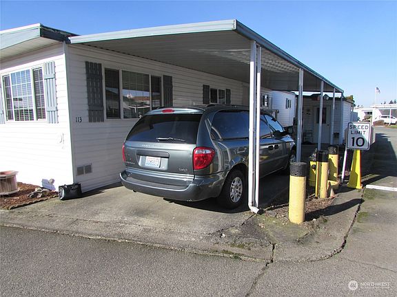 Well cared for 2 Bedroom/ 2 Bath, Double-wide (1,120 Sq Ft) on Sunny corner lot in Senior Park within minutes of Everett Boeing Plant & most Amenities w/lot rent under $700 p/m. Homes Extr. features include Updated Vinal Exterior & vinyl windows, newer TPO Roof, 2 sheds and a sitting area in carport and entry steps in carport were modified for ease of use and guest parking near home. Interior upgrades include: 3 Skylights, Walk-in shower & Mstr. Bdrm. closet, newer laminate flooring & Appliances plus lots of natural lighting. Mobile County Club ( Senior Park ) Clubhouse features outside pool, exercise room & occasional gatherings and on-site Park staff plus other amenities for the homeowners here. Come take a closer look.