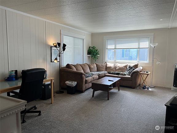 Lovely updated home in Mobile Country Club, everyone's favorite park. One of the larger ones at 1340 sq. feet. This beauty lives big, with a family room, living room, dining room, office area in living room, updated kitchen, updated baths. Lovely primary suite. White trim and chair railing accents. Clean and ready to go. Close to shopping, freeways and Boeing. Act now. Park offers club house, activities, outdoor pool, exercise room, pool table room, library. Active 55+ community. Act now!
